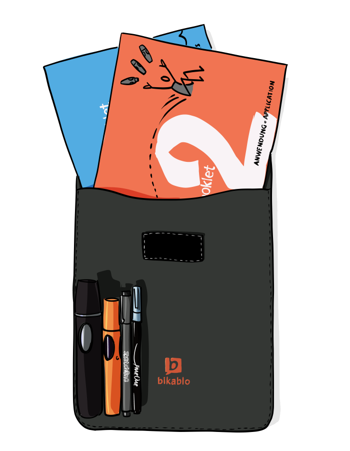 bikablo® Starterset: Every participant receives the official bikablo StarterSet including four visualisation markers and two StarterBooklets that summarise the principles, content and techniques of the training on 64 pages. So you can start using them as soon as you're back from the training!